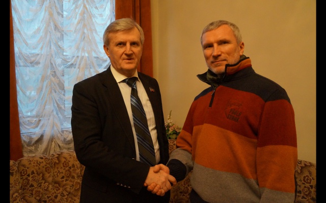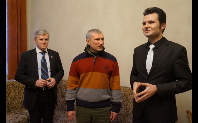 Сегодня, 30 января, председатель партии "РОДИНА", депутат Госдумы Алексей Журавлёв в Донецке встретился с министром образования ДНР Игорем Костенком и министром культуры Александром Парецким.